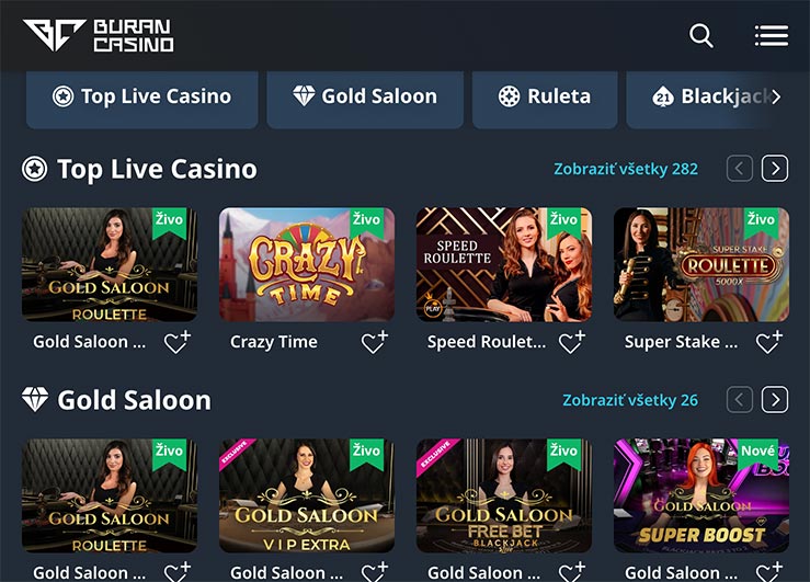 Keď to urobíte, uvidíte, že medzi oficiálnou desktopovou webovou stránkou BuranCasino a jej mobilnou verziou nie je takmer žiadny rozdiel. Všetky hry sú tu a bonusy je možné použiť rovnakým spôsobom ako na desktopovej verzii.